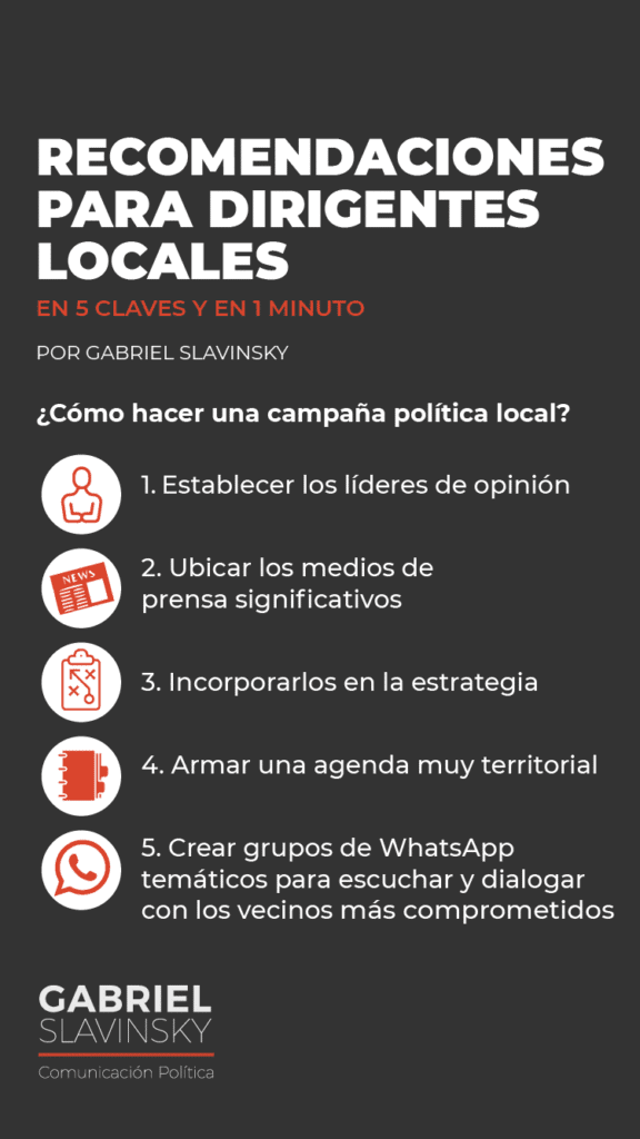 100 recomendaciones para dirigentes políticos¿Cómo ser un buen orador?¿Qué es un meme político?¿Cuáles son los ataques más certeros?¿Cómo organizar la militancia política?¿Para qué sirve la Propaganda hoy en día?¿Cómo desarrollar una campaña local exitosa?¿Qué es una campaña negativa?¿Qué es la orquestación política y comunicacional?